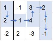 按上述走法,取到的数之和为(-1) + (-1) + (-3) + (-2) + (-1) + (-2) = -10,可以证明为最大值。因此,请注意,取到的数之和的最大值也可能是负数。